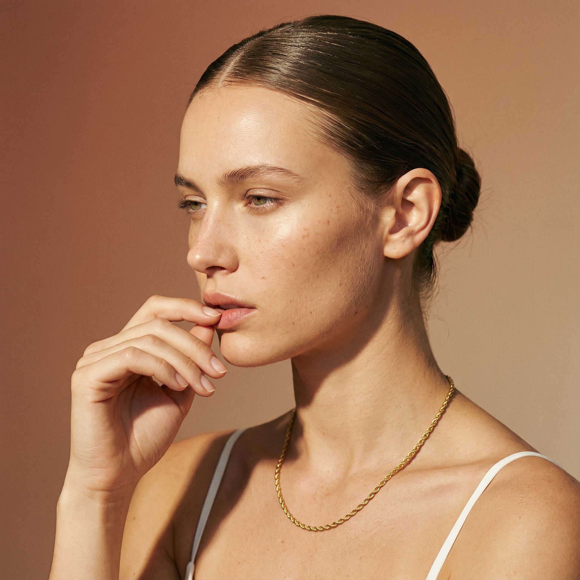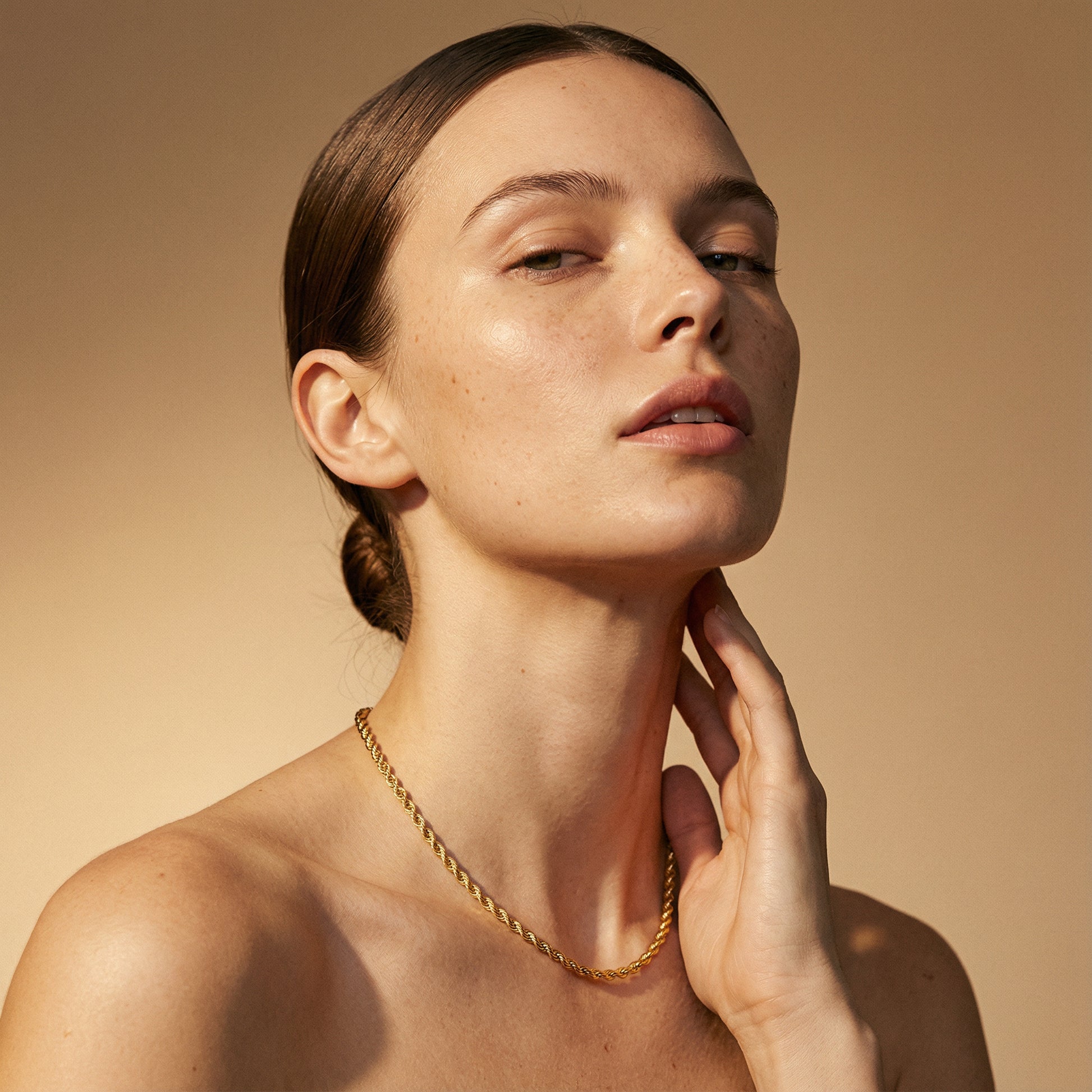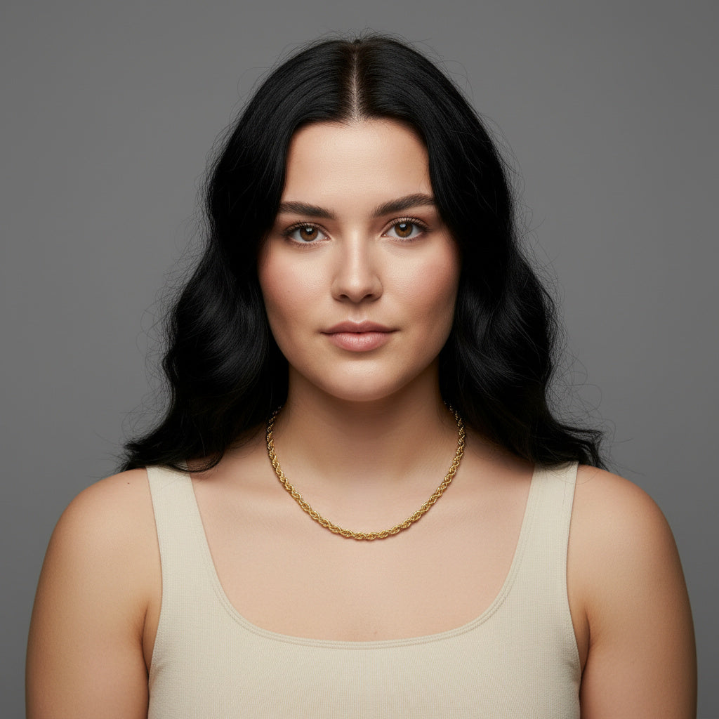 Bijutaki Luma Twist İnce Gold Kolye, burgu formundaki zarif zincir yapısıyla sade şıklığı modern bir dokunuşla buluşturur.