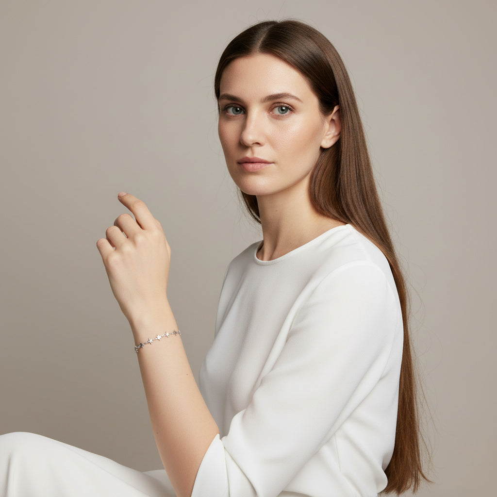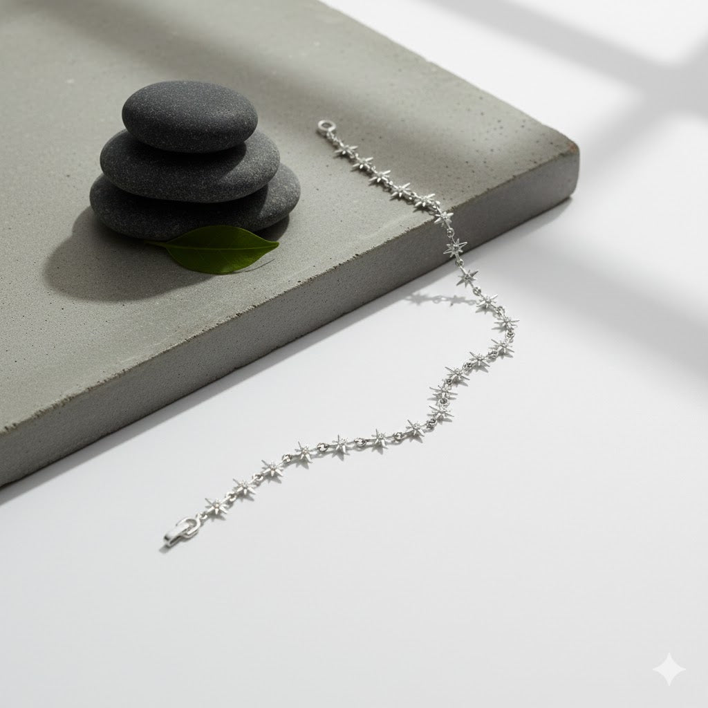 Bijutaki Stella Mini Yıldız Bileklik, minimal yıldız detaylarıyla bilekte zarif bir ışıltı sunan, zamansız bir tasarımdır.