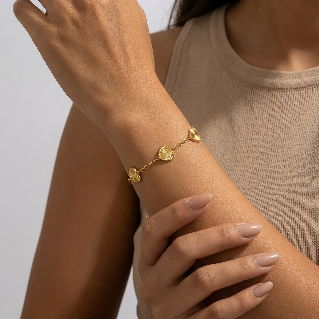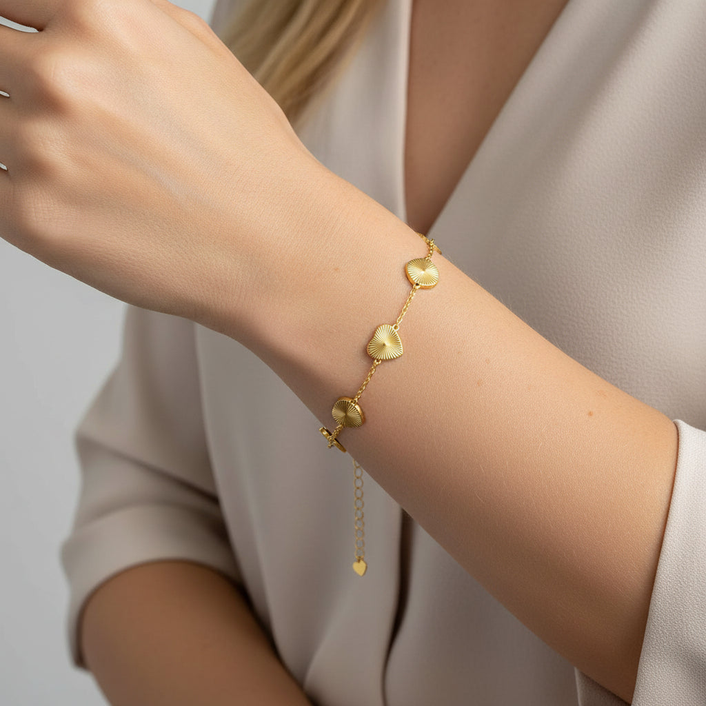 Sevginin en zarif sembolü bileğinizde hayat buluyor. The Radiant Heart, zincir üzerine dizilmiş kalp figürleriyle romantik ve modern bir stil sunar.